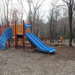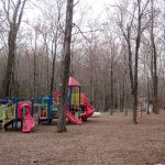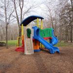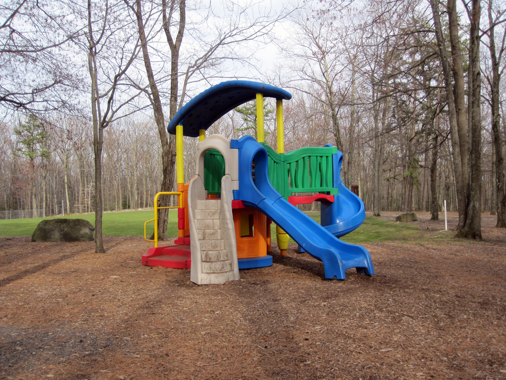There are a few different playgrounds/playsets for kids of all ages – from a small plastic tree for toddlers, to tire swings, to your standard swings and slides.