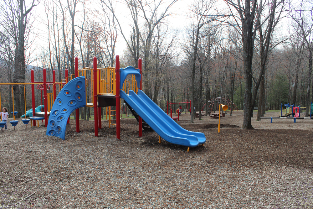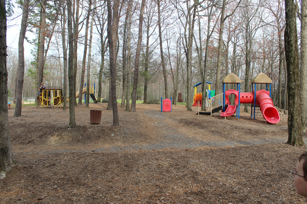 One of the nicest things about Mountain View Park is that it is SHADED in a lot of areas – which is hard to find at kids parks in the Poconos. On a hot day (and having 2 redheads that burn quickly), I really want to be enjoying time with my kids, not worrying that they don’t have enough sunscreen on. So Mountain View Park is great because it provides shade, but also has plenty of facilities for kids of all ages and even Teens and Adults.