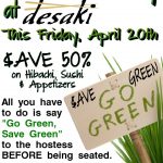 If you like Hibachi we've got a deal for you! desaki Japanese Restaurant in Swiftwater, PA (right up the road from Great Wolf Lodge, Mount Airy Casino and the Crossings Premium Outlets) is offering 1/2 OFF ALL FOOD this Friday for their Community Appreciation Night. Just say "Go Green, Save Green' to the hostess PRIOR to being seated. … [Read more...]