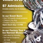 “A Night at the Ice Museum “ Family Fun Event to be held Oct 26-28 Check out the area’s coolest new attraction with an extra fall fun twist! October 26-28, Sculpted Ice Works will present: "A Night at the Ice Museum"! The event features indoor fall fun rain or shine. Displayed in the event barn are over 100 expertly carved pumpkins, a children’s play area made of hay, … [Read more...]