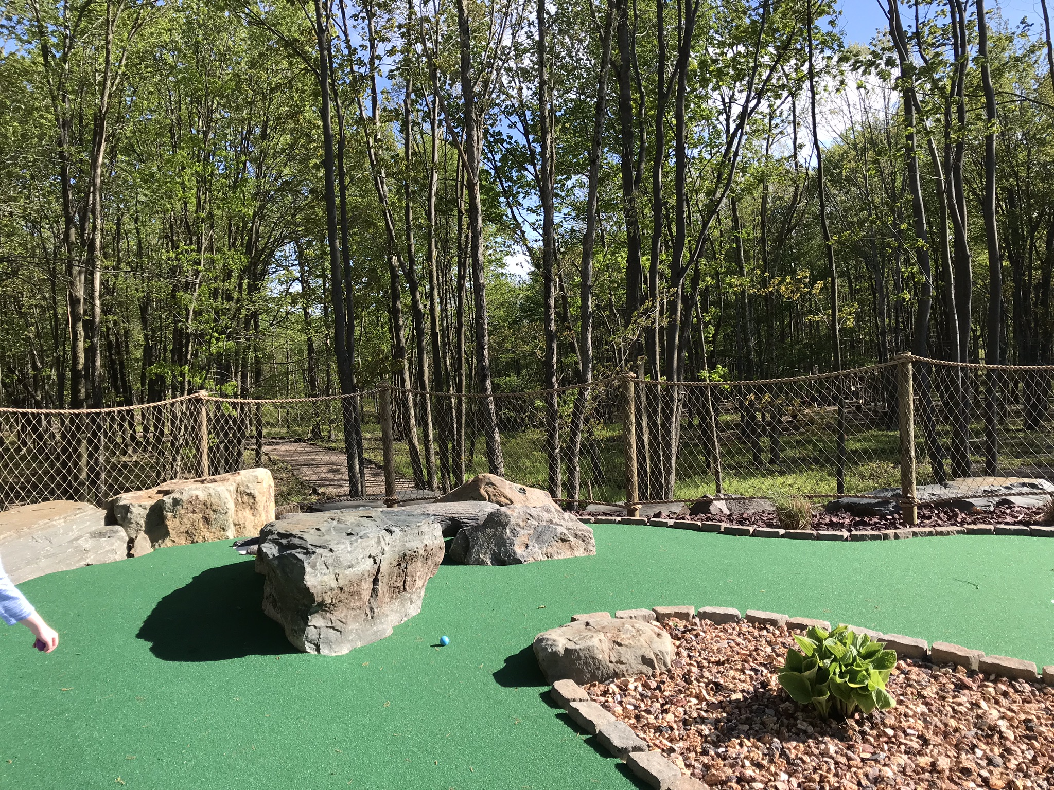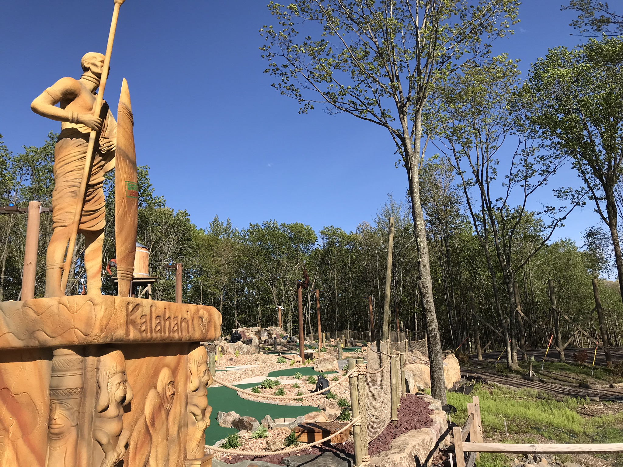 variety that the courses had, and that the mini-golf was “Kalahari Themed”. From the music, to the Kalahari themed scenery (both natural and manmade), the course has the Kalahari look, feel & experience – all while enjoying the outdoors. The mini-golf is placed next to the treetop/zipline adventures, so you feel that consistent Kalahari theme, and also get an eagle-eyed view into another fun outdoor activity that Kalahari has to offer.