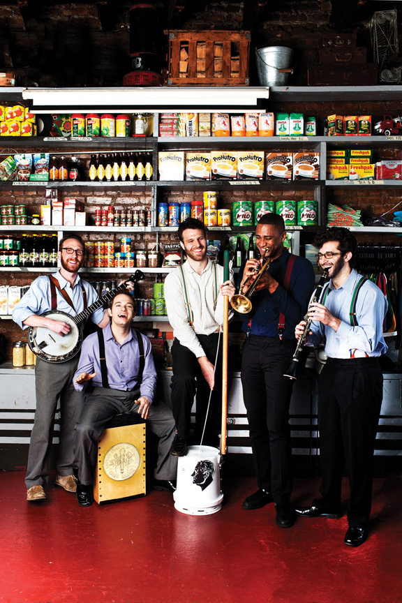 You are floating down the Mississippi when the band strikes up a tune and everyone is dancing, clapping and singing along. This is the experience of Roosevelt Dime, playing Harmony Presents on Saturday, November 23rd at 7:30 pm. Called a “perpetual crowd pleaser” by The New York Times and tickling the senses of audiences everywhere, this jug-band blues, New Orleans Soul and neo-folk musical group from another era is a site to see. Drunken, vintage atoms of banjo, gut-bucket basses, clarinet, and saxophone slip into 2013, filling the ho-hum heart with thrills, song and dance!