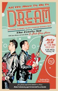 Hawley, Pa – July 11, 2017 – Classic rock ‘n’ roll, soda shop eats and cutting-edge science come together Saturday, July 29, at the Boiler Room as The Everly Set plays Hawley in a fund-raising dinner-concert for the Rett Syndrome Research Trust.